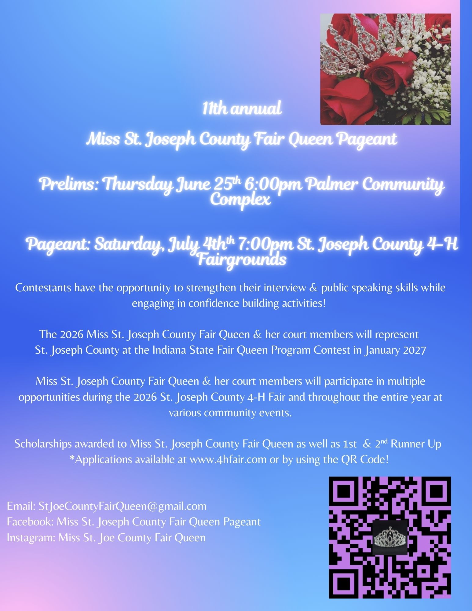 2026 Miss St. Joseph County Fair Queen Pageant Application: https://forms.gle/a6S4YtnVftyBRBja6